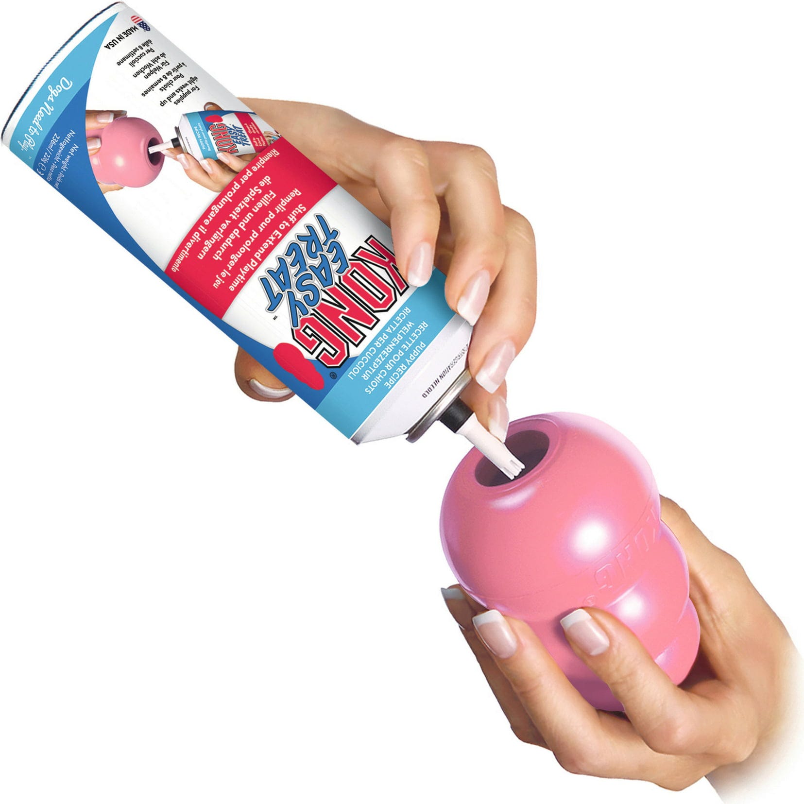 La pasta KONG® Easy Treat™ è uno snack irresistibile in una pratica bomboletta spray per cuccioli a partire dalle 8 settimane di età.
