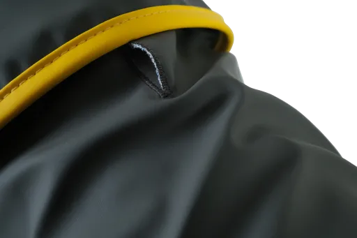Collo e petto regolabili con velcro ed elastico.